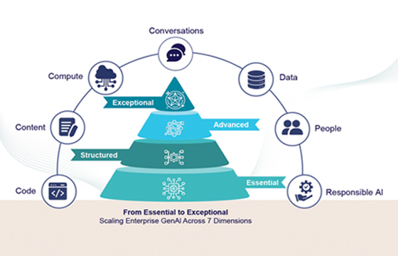 Enterprises need structured GenAI adoption. The 7-dimension maturity framework ensures scale, compliance, and business impact.
