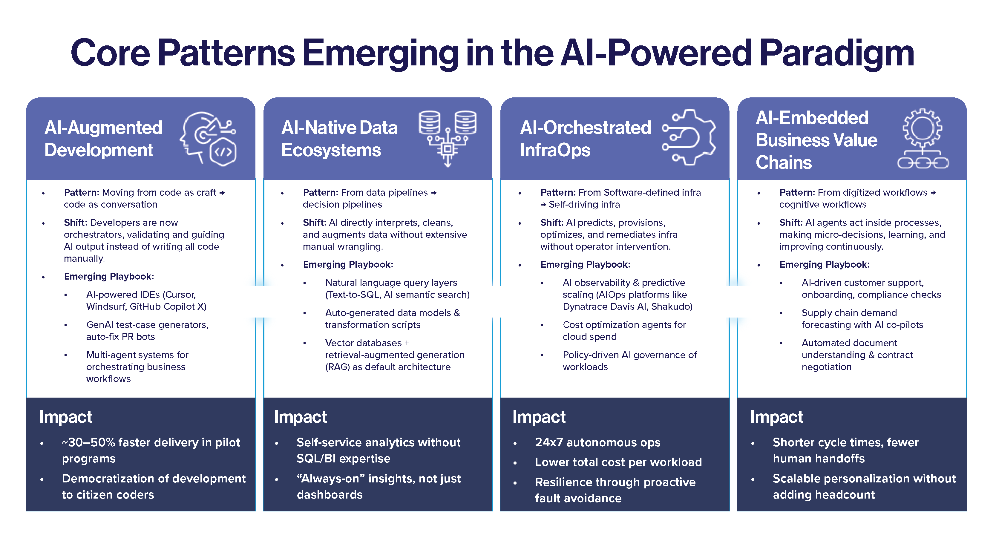 Today, we stand at the dawn of the AI-Powered Paradigm, where systems no longer just execute code but reason, predict, and continuously improve. This shift is redefining how applications are developed, how data is managed, how infrastructure operates, and how business processes evolve.